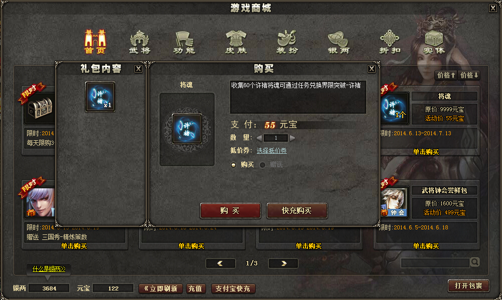 本次以商城中的将魂为例,向大家介绍道具购买的流程: