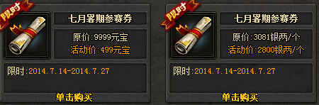 1张499元宝,购买后可获得皮肤包1个与报名参赛资格;