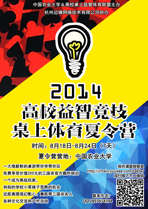 同学,放下手机电脑LOL美剧英剧韩剧日本动画片吧,别闷在家里宿舍里了,说不定你的牌友里就有了未来的朋友、女朋友、男朋友和基友呢?记住,记住,这个夏令营可不只是一起疯玩哦,我们要培养我们的智商,认识更多的小哥妹子娘炮女汉子,我们要向着积极乐观的生活方式迈步!