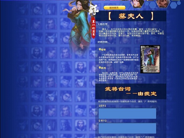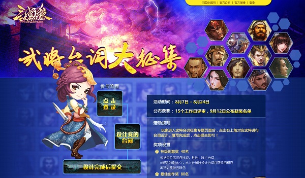 玩家进入武将台词征集专题页面后,点击右上角对应武将进行台词设计
