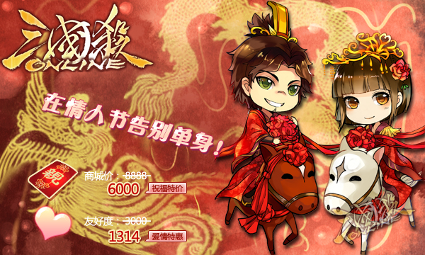 求亲卡在商城首页祝福特价6000元宝(原价8888元宝),结姻友好度爱情特惠1314点(原需3000点)