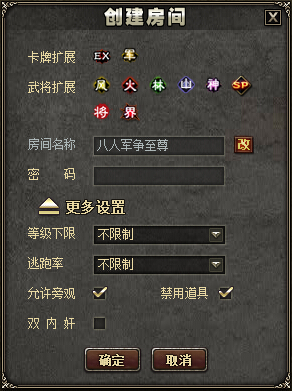 至尊场、界限突破场内等级170级以上或VIP7可以选择禁用道具(点将卡、换将卡、手气卡、身份卡)