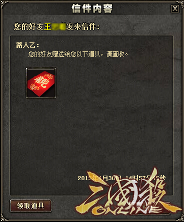 赠送道具通过系统信件