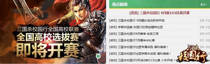 感谢大家长久以来对校园行的支持和关注,三国杀校园行的官网终于在今天正式上线了!