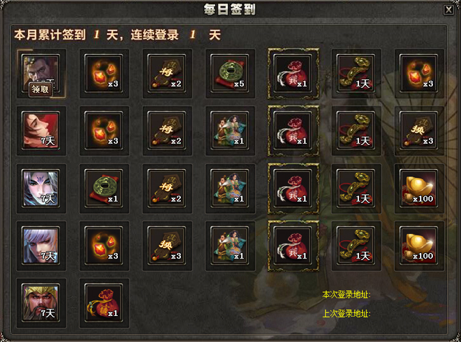 全月满签30天即可获得元宝袋一只,可开出大量绑定元宝。