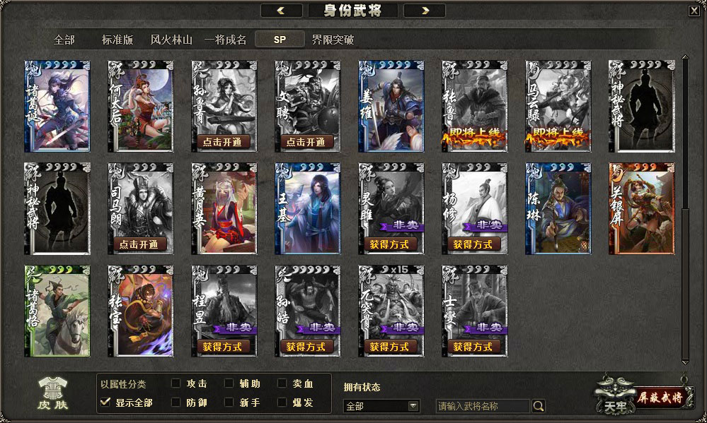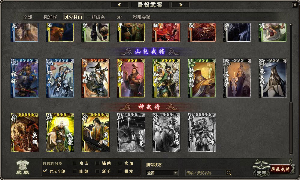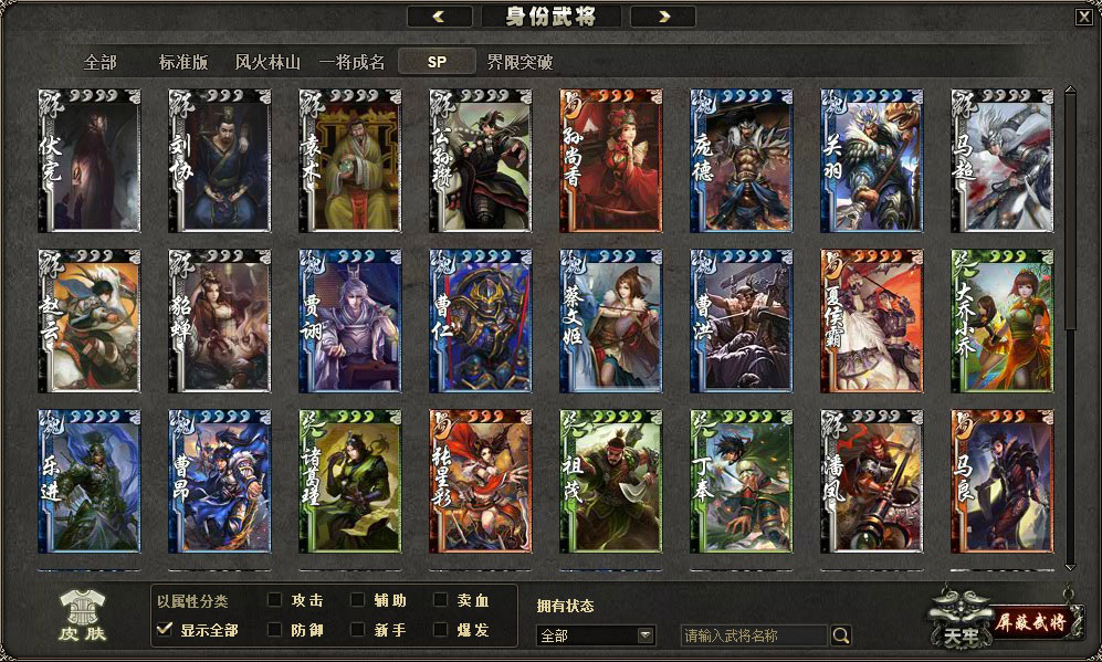 同时我们将取消原有的“特殊”分类及“线上专属武将”和“☆SP系列武将”,原特殊分类中的“神武将”移动至风火林山系列中,“线上专属武将”移至SP系列;原☆SP系列中三名武将会重新命名,其中☆SP赵云更名为SP赵云,☆SP曹仁更名为sp曹仁,☆SP貂蝉更名为sp貂蝉,并移动至SP系列当中。