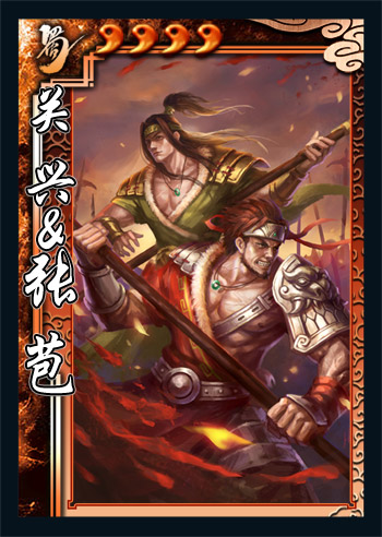 关兴是关羽的儿子,张苞是张飞的儿子,两人与刘禅是结义兄弟。在三国杀中这两个蜀二代被合成了一张双武将角色,其技能“父魂”昭示着两人为父雪仇的决心。关兴&张苞是一个爆发力非常强的武将,只要有足够的牌,“武圣”与“咆哮”的联动可以瞬间带走任何敌人,即使手中只剩黑牌,依然可以通过“父魂”将两张牌作为【杀】使用,对手牌的利用可谓达到了极致。