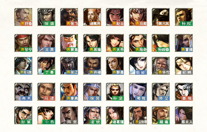 新版将池包含武将: 界刘备、徐盛、界张飞、诸葛亮、界赵云、界马超、黄月英、孙权、界甘宁、王异、界黄盖、界周瑜、界大乔、界陆逊、孙尚香、界曹操、界司马懿、丁奉、界张辽、界许褚、界郭嘉、甄姬、界华佗、貂蝉、典韦、马谡、界李典、徐晃、孙坚、荀攸、邓艾、姜维、孙策、小乔、陈宫、凌统、诸葛瑾、界公孙瓒、顾雍、蔡夫人