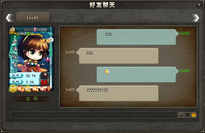 扩充聊天系统的频道,独立出好友专用的聊天界面,双击好友昵称即可呼出界面,打牌调侃两不误。
