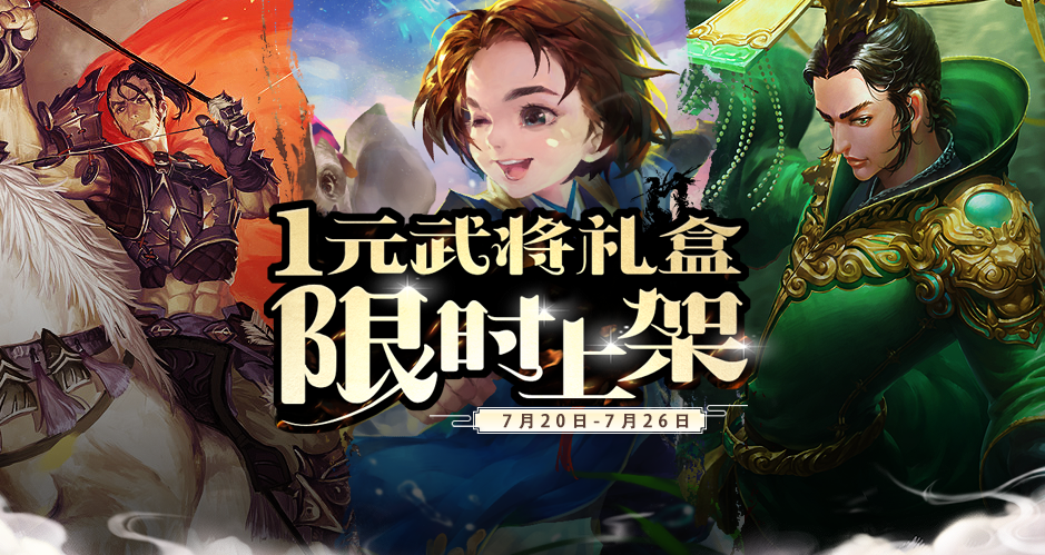 7月20日-7月26日,商城热卖将限时上架新一期的一元武将礼盒,除了传说皮肤的试用权外,礼盒内所包含的道具均为武将相关:永久武将、武将宝券、将魂、银两袋,价格更是低至100元宝,惊喜不容错过!