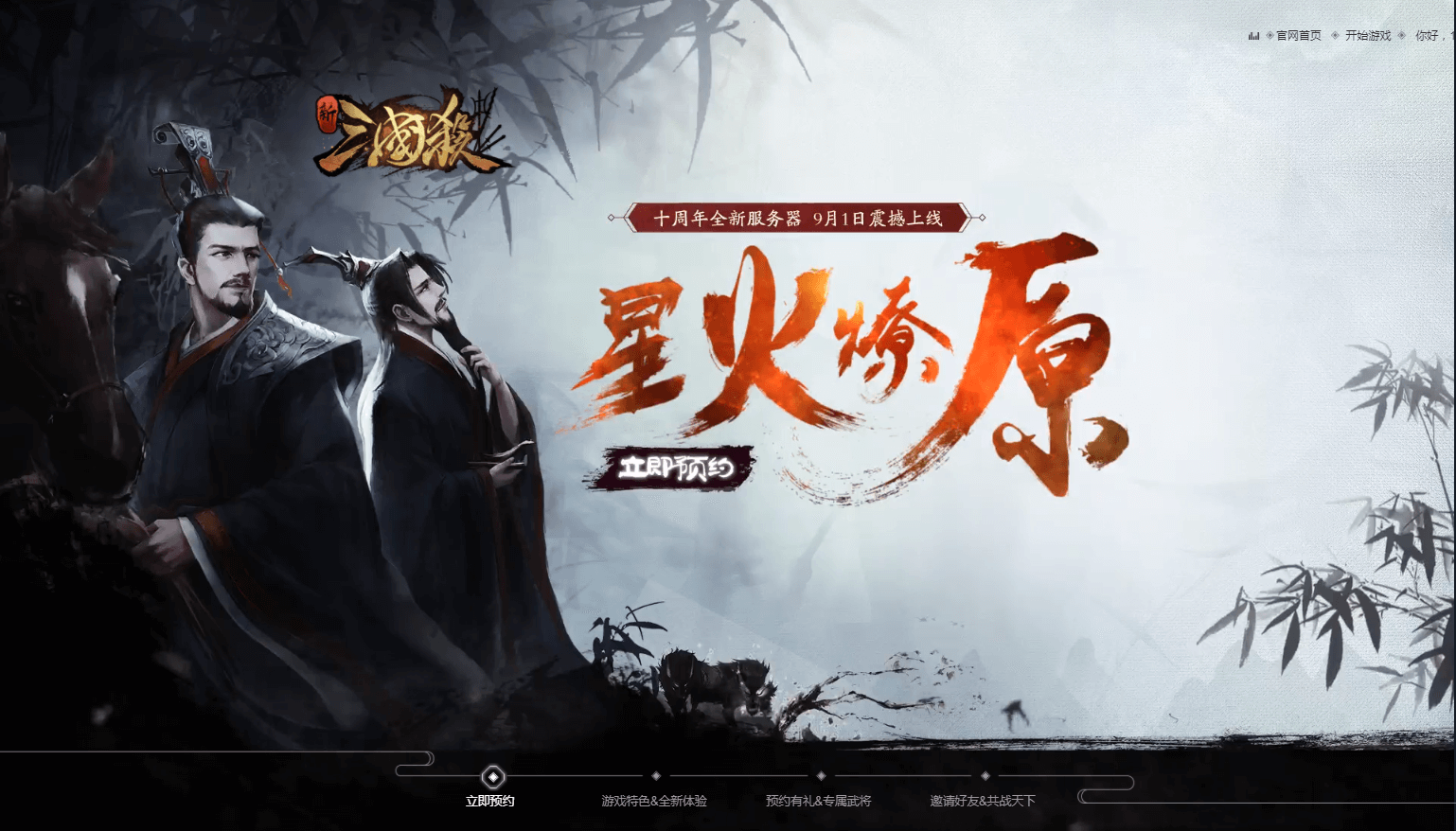 三国杀十周年全新服务器(简称新三国杀),将于9月1日震撼上线,即日起开启线上预约活动,成功预约即可获得限定武将——灵雎!新三国杀将全面上线阴雷及星火燎原扩展包新武将、开放第一部剧情副本——《黄巾之乱》,同时还将首次开启身份场、国战和欢乐成双的排位竞技模式,一梦十年,等你一起再战殺场!