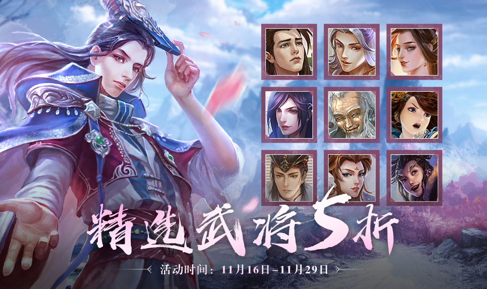 活动期间,我们精选了曹叡、徐氏、马良、曹节、秦宓、王基、刘琦、何太后、新于吉、董允。进行5折优惠活动,玩家可以通过商城页面特惠专区进行购买。