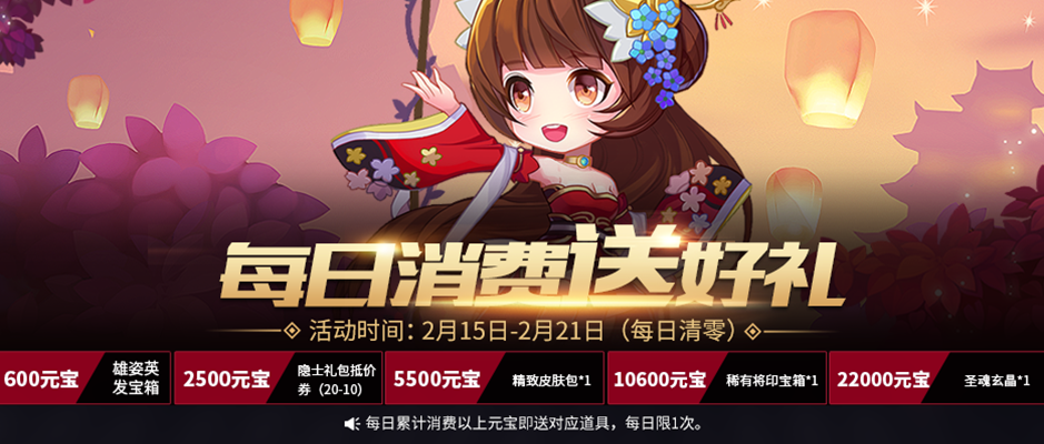 活动时间:2月15日0点——2月21日24点(消费元宝任务每日清零)