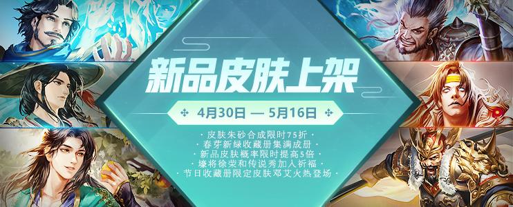 当期新品皮肤在皮肤包中出现的概率增加五倍,更享75折朱砂特惠合成(限定除外),新品皮肤更易获得