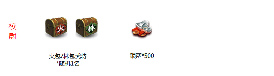 | 进击的排位(二) | 完成1局统率三军排位赛 | 统率三军排位专属武将试用宝箱 |