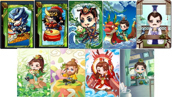 1、端午李典,鼓手夏侯惇,划手夏侯渊,划舟陆逊为静态秀;杨修品粽,白蛇缘起,醉饮雄黄,粽香四溢为动态秀;鼓声雷动为动画秀