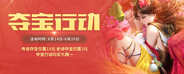 购买三国秀【执玺斥兄(3天)】,并赠送【夺宝行动(史诗皮肤宝箱)】*1与【夺宝碎片】*1,打开宝箱可获得以下随机道具之一