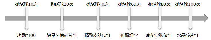2、每开启鹊星夕情宝箱*1,在绣球倾心页面活动中获得绣球*1;