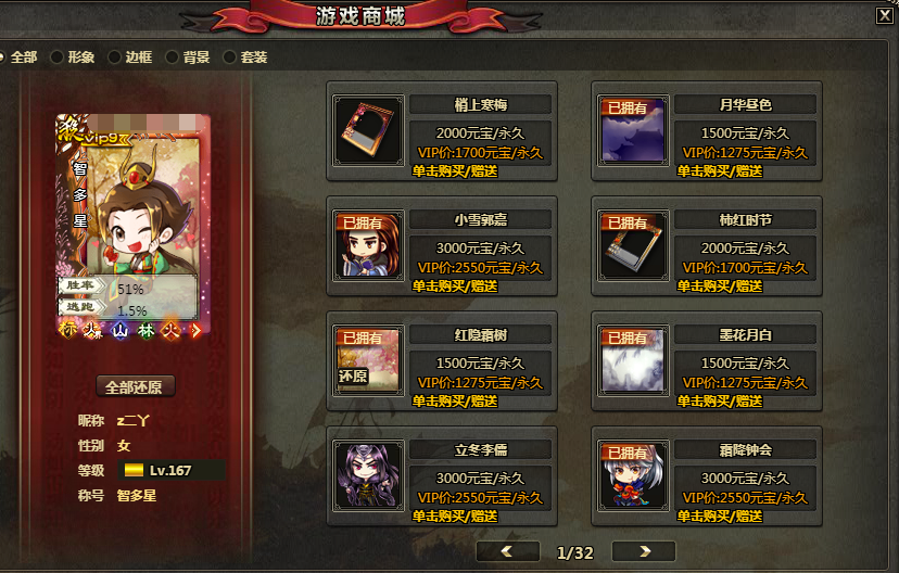 4、三国秀商城优化,增加“已拥有”三国秀标记。