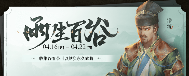 4月16日0点-4月22日24点,消费文和李傕动态碎片*5,可以选择兑换二选一【动态水晶-文和乱武*李傕,谷雨春茶礼盒*50】,累计先完成1次