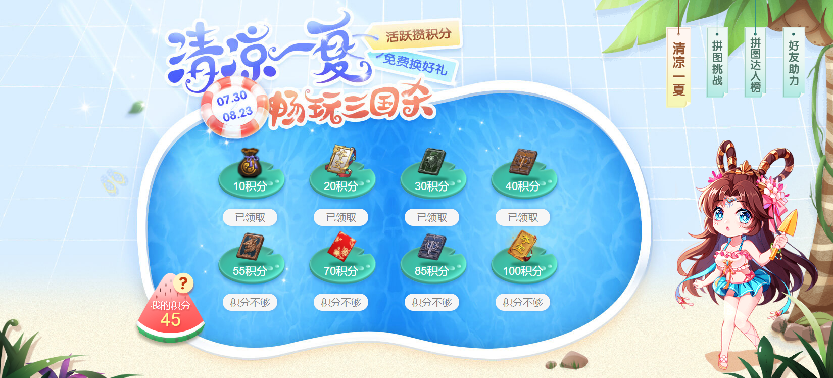 *因登录游戏单独计算统计,请玩家点击活动入口【盛夏专属】,前往参与参与!以免造成登录后,造成无法正常获取积分情况!