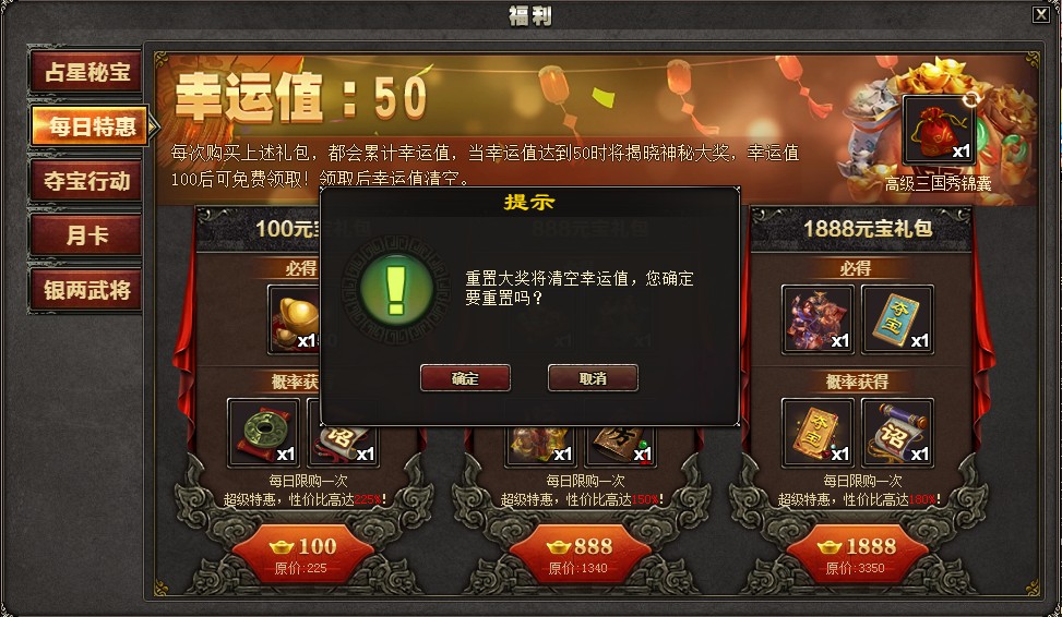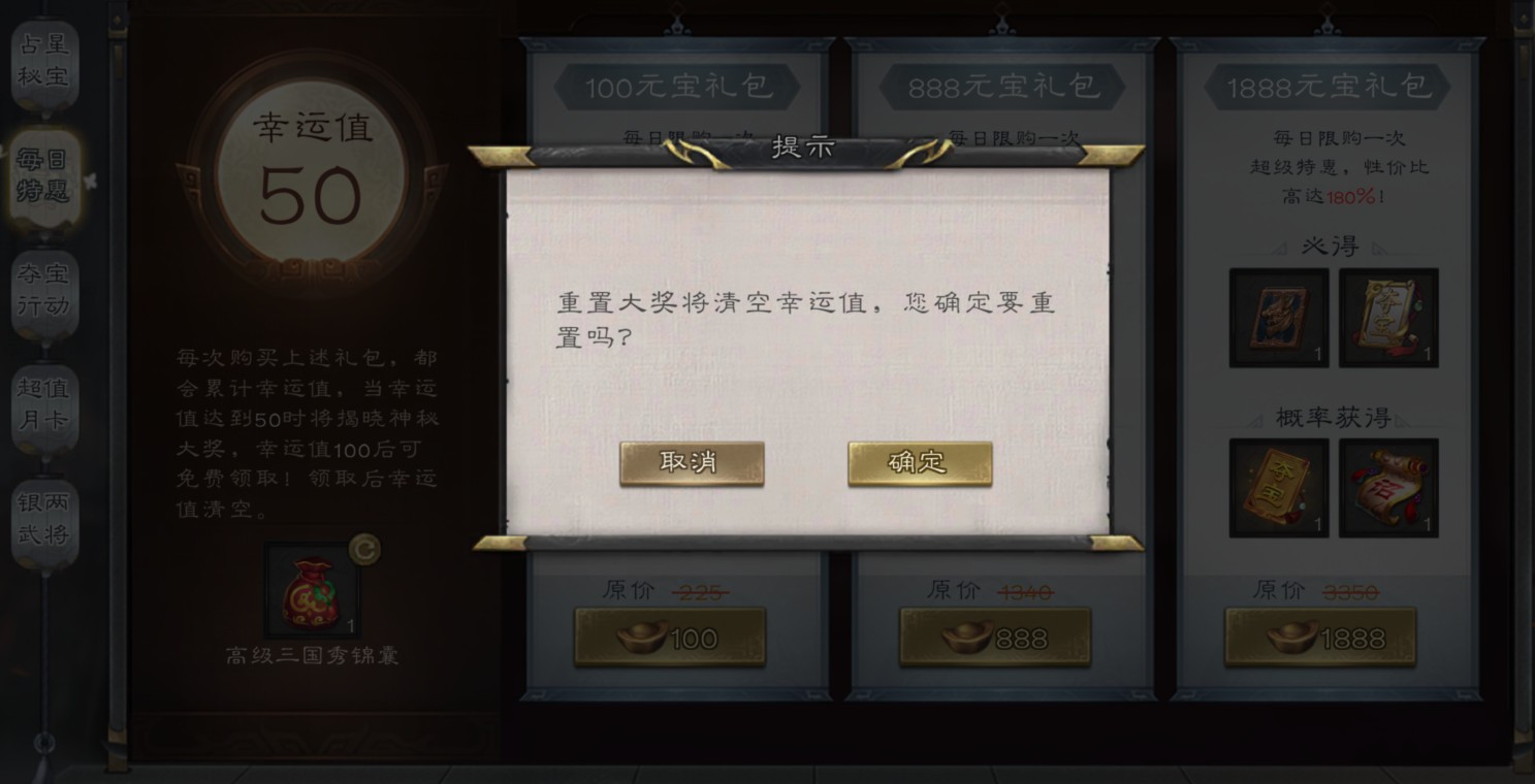 神秘大奖显示出来后,可选择刷新重置,重置时将清空幸运值。