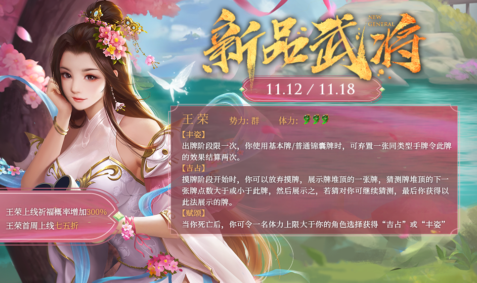 备注:王荣隶属于祈福限定将,隶属于限定武将灯,后续会通过各种不同类型活动进行返场。