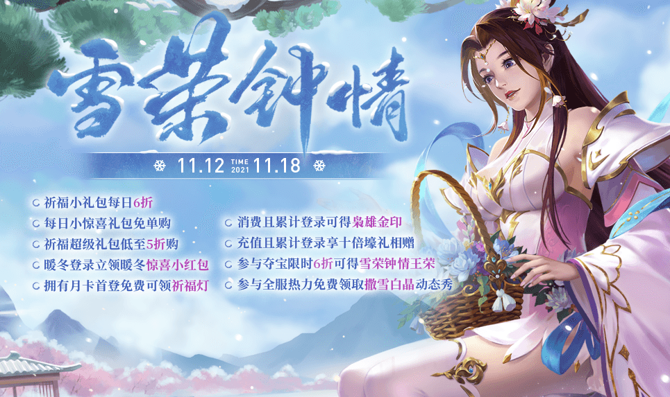 1.2021-11-12 00:00:00~2021-11-18 23:59:59暖冬热力活动期间,通过每消费100元宝领取获得小冰花