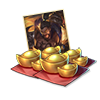 礼包内容:购买后可得手气卡*1,并赠送金枝童趣宝箱*1;打开宝箱可以得到界孙尚香,金枝玉叶*界孙尚香,百器皆擅*界孙尚香,夙尚祈新*sp孙尚香,新春贺岁*SP孙尚香,水晶碎片,大将军印等将印,将印宝箱,功勋60~300,年节安康收藏册笑颜送新动静态部件;孙尚香,SP孙尚香各品质皮肤部件等丰富道具其中之一(部分重复道具返还夺宝碎片/南瓜饼/夺宝重置券)